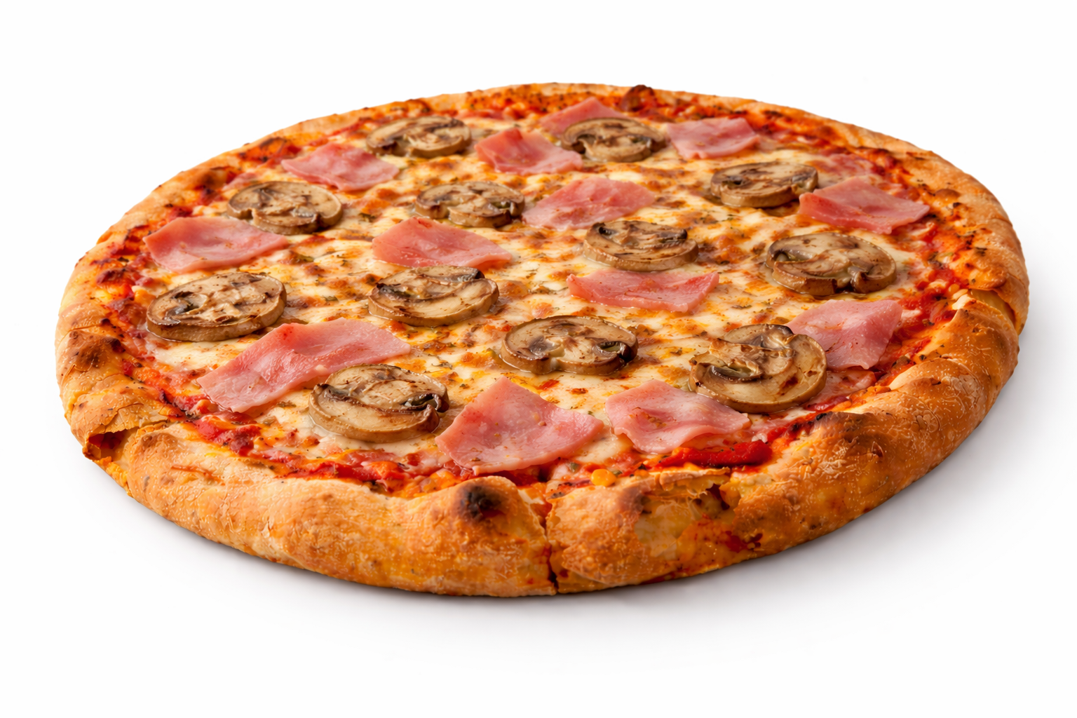 sos pomidorowy, mozzarella, pieczarki, szynka, oregano opakowanie pizza -